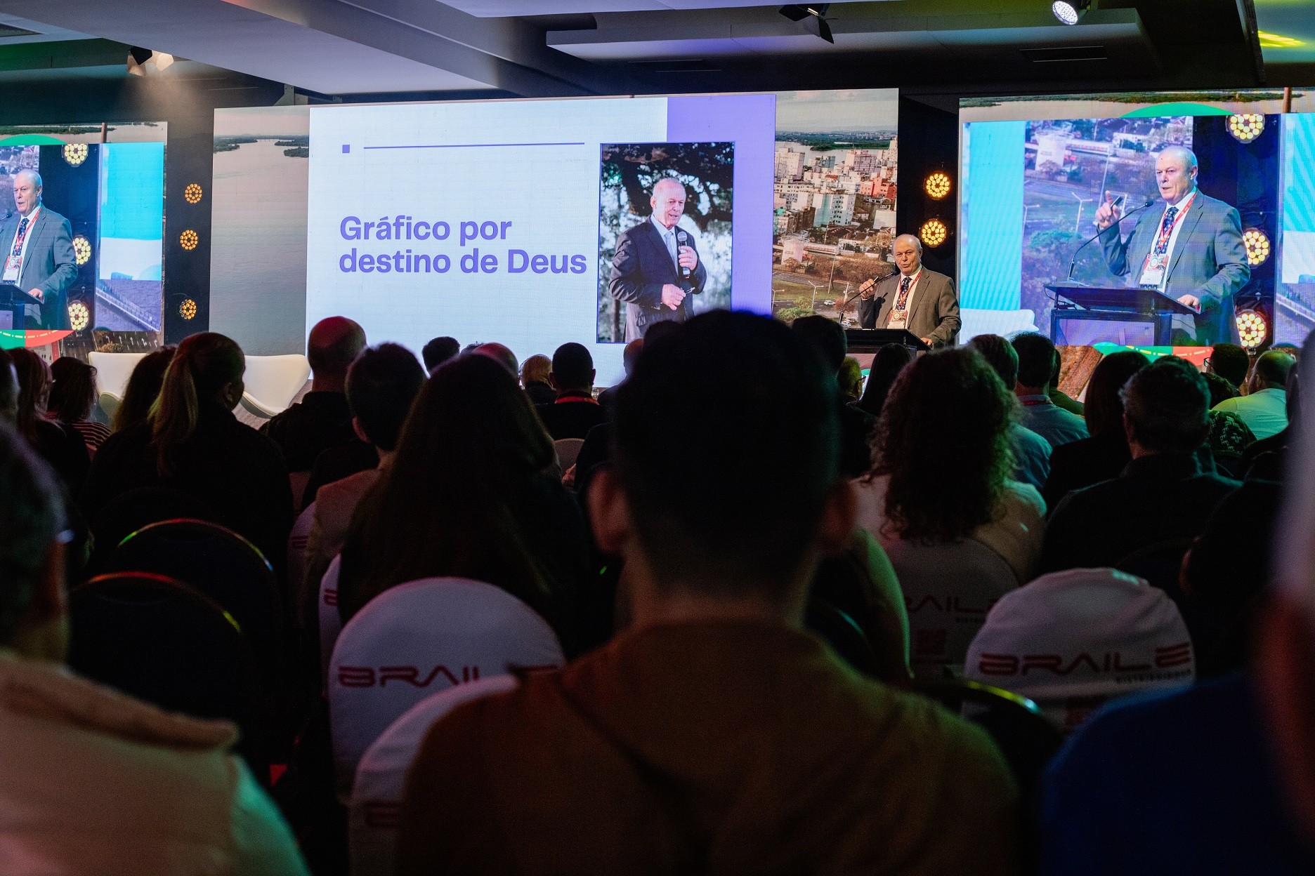 O vice-presidente da Região Sul da Abigraf Nacional, Cidnei Barozzi, falou sobre resiliência e fé: “O RS nos ensina muito sobre superação, depois de tudo que passaram nas enchentes de 2024, estão retomando com este evento.”