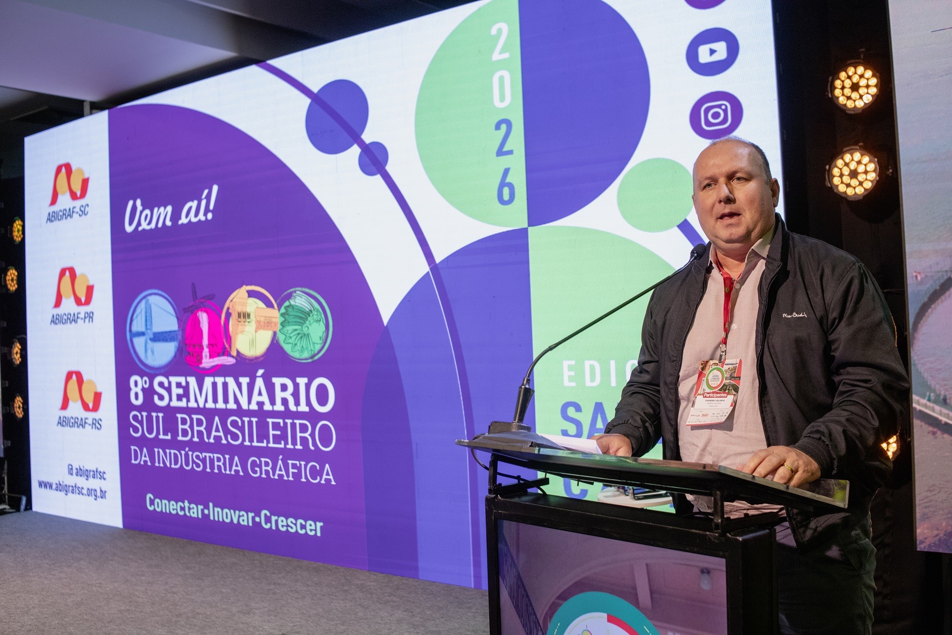 Ao final do Seminário, o presidente da Abigraf-SC, Evando Volpato, fez o lançamento da oitava edição do evento, que acontecerá em 2026, em SC. Também Noschang, agradeceu a presença de todos e a dedicação dos envolvidos na organização desta edição do encontro, deixando como mensagem uma frase de Albert Einsten: “A mente que se abre para uma nova ideia jamais voltará ao seu tamanho original.”